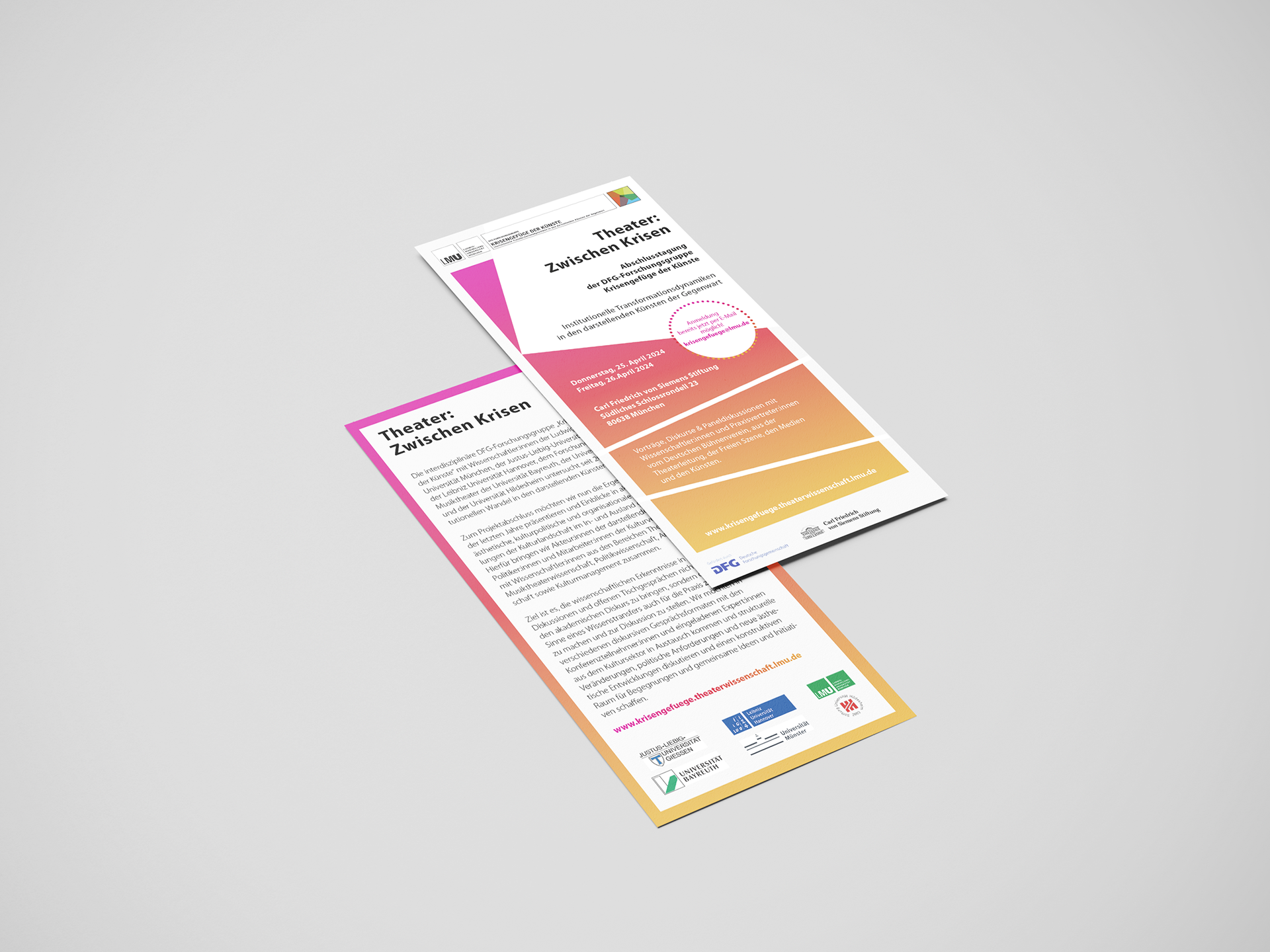 Flyer und Anzeigen für die  DFG-Forschungsgruppe "Krisengefüge der Künste" 2018/19/21/23/24